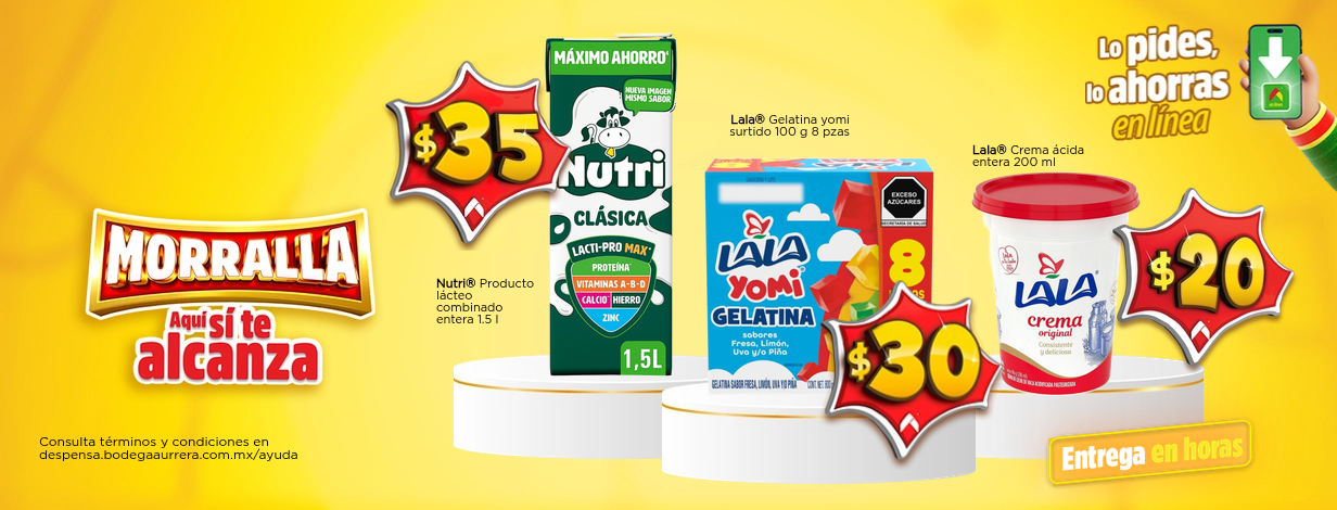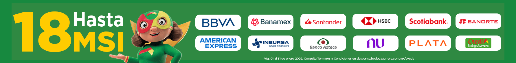 ¡Tu despensa siempre gana con el poder de ahorrar mucho más en Bodega Aurrera en Línea! Aprovecha tu Morralla y compra tu canasta básica con los precios más bajos. Encuentra todo para tu hogar y los abarrotes, frutas y verduras favoritos de tu familia. Pide en Bodega Aurrera en Línea o desde su App los productos de farmacia y electrodomésticos, pantallas y videojuegos que te hacen la vida más fácil y divertida. Paga con vales de despensa, tarjeta de crédito, débito o en efectivo y recibe todo sin salir de casa con Envíos express, Envíos a domicilio o Recoger en tienda, ¡tú eliges!
