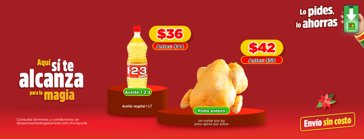 ¡Tu despensa siempre gana con el poder de ahorrar mucho más en Bodega Aurrera en Línea! Aprovecha tu Morralla y compra tu canasta básica con los precios más bajos. Encuentra todo para tu hogar y los abarrotes, frutas y verduras favoritos de tu familia. Pide en Bodega Aurrera en Línea o desde su App los productos de farmacia y electrodomésticos, pantallas y videojuegos que te hacen la vida más fácil y divertida. Paga con vales de despensa, tarjeta de crédito, débito o en efectivo y recibe todo sin salir de casa con Envíos express, Envíos a domicilio o Recoger en tienda, ¡tú eliges!