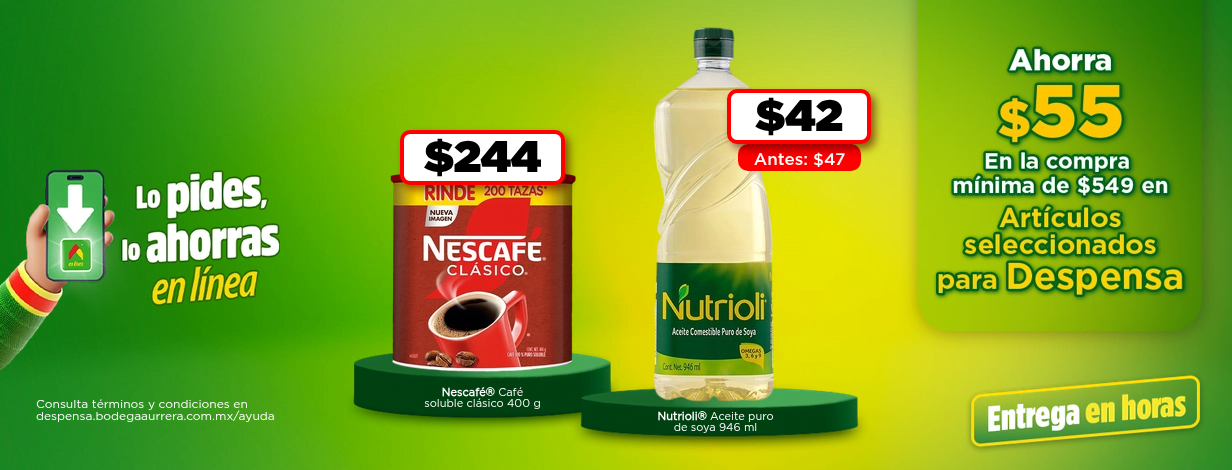 ¡Tu despensa siempre gana con el poder de ahorrar mucho más en Bodega Aurrera en Línea! Aprovecha tu Morralla y compra tu canasta básica con los precios más bajos. Encuentra todo para tu hogar y los abarrotes, frutas y verduras favoritos de tu familia. Pide en Bodega Aurrera en Línea o desde su App los productos de farmacia y electrodomésticos, pantallas y videojuegos que te hacen la vida más fácil y divertida. Paga con vales de despensa, tarjeta de crédito, débito o en efectivo y recibe todo sin salir de casa con Envíos express, Envíos a domicilio o Recoger en tienda, ¡tú eliges!