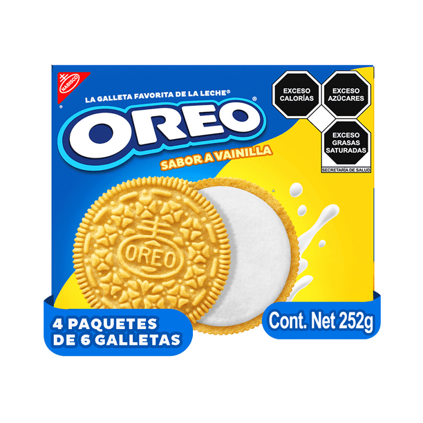 Galletas Oreo Vainilla Relleno Sabor Vainilla Caja Familiar 4 Paquetes c/u 6 Galletas